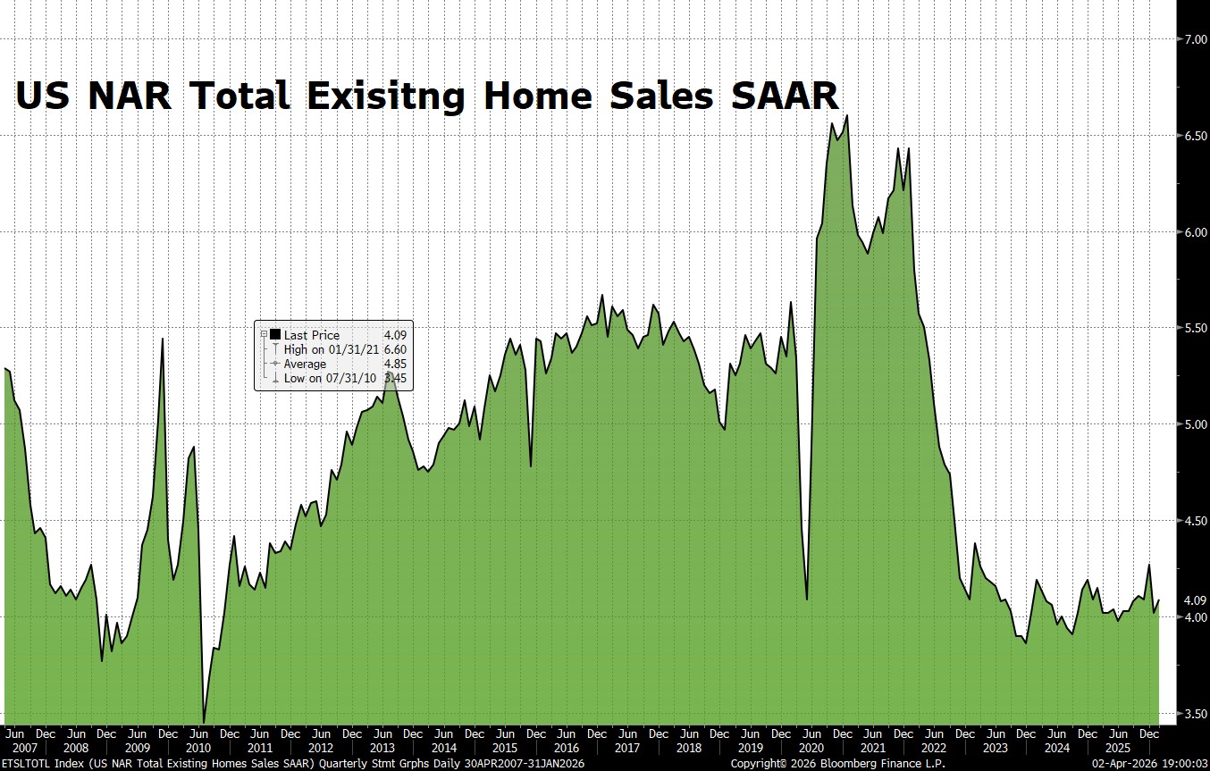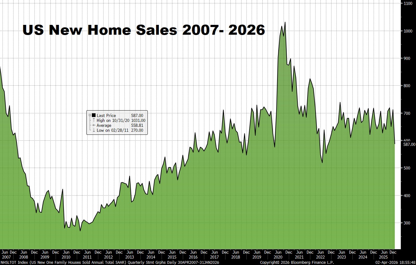 The US economy did well in the first quarter and we even began to see recovery in the industrial sector where manufacturing has been in recession for over two years. The service sector remained strong and robust growth was notable. The purchasing manager’s survey showed the sector to be expanding for the first time in over eight quarters. The Purchasing manager’s survey showed the NAPM PMI numbers to be at 52.4 and rising which is indicative of an expansion in the manufacturing sector. This is surprising because Interest rates unfortunately are now back at the high-end of the range they have seen for the last two years and this will certainly put a dent in the already soft housing sector. Housing continues to be the area of concern for the US economy. Both existing home sales (figure 2) and new home sales (figure 3) are way below levels considered to be consistent with a good economic cycle. New home sales have declined from over 700,000 per month to approximately 600,000 per month over the last several months. Consumers have been unwilling to sell their homes give up their 2 to 3% mortgages so the turnover in housing has been minimal. This is affecting homebuilders as well as home supply companies like Lowe’s and Home Depot.